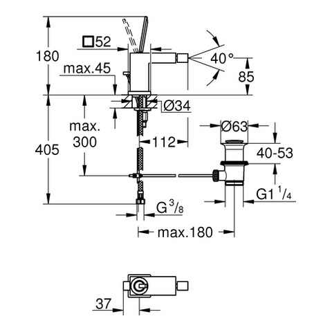 GROHE Bidet-Einhebelmischer Eurocube Joy 1/2", mit Ablaufgarnitur, chrom