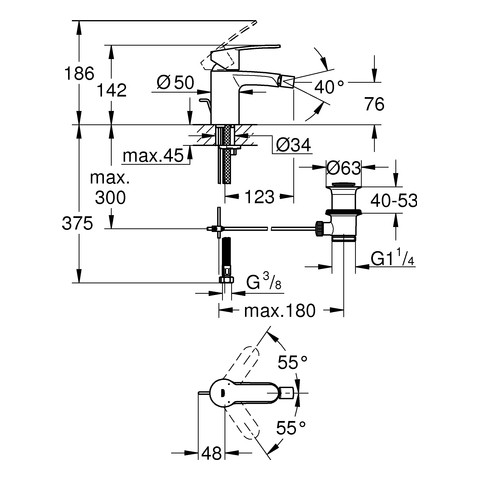 | Aufbauhöhe Unterkante Hahnauslass | 76 mm |