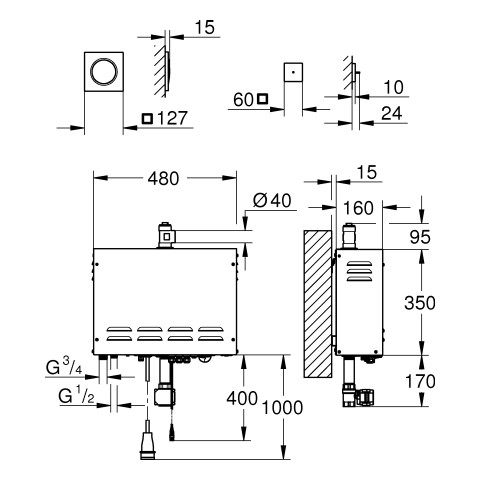 GROHE Dampfgenerator F-digital Deluxe 48x35x16cm, 3,3 - 9,9 kW