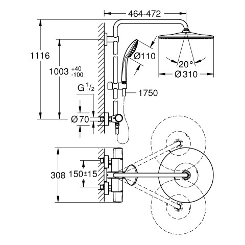 GROHE Duschsystem Euphoria 310 mit AP-Thermostat, Wandmontage, chrom