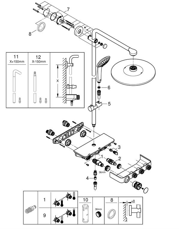 GROHE Duschsystem Euphoria SmartControl 310 Duo mit AP-Thermostat, Wandmontage, supersteel FG26507DC0