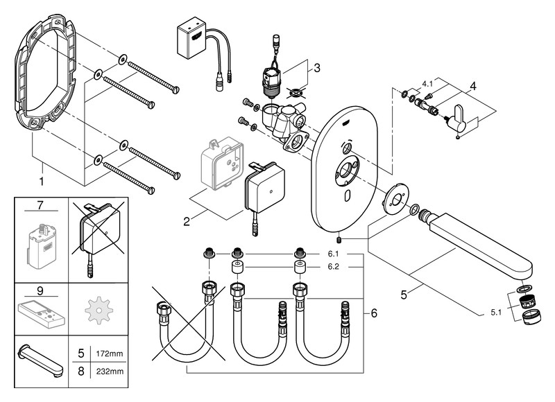 mit Mischung und variabel einstellbarem Temperaturbegrenzer, Infrarot-Sensor und Bluetooth-Modul für bidirektionale Kommunikation, zahlreichen Auslese-, Einstellungs- und Servicefunktionen, mit Trafo 100-240 V AC, 50-60 Hz, 6,75 V DC, Fertigmontageset für UP-Einbaukasten 36 339 001, Long-Life Oberfläche, max. Durchfluss bei 3 bar 8 l/min, Laminarstrahlregler, Ausladung 17,2 cm, Reichweite bis zu 10 m, abhängig von Wand- und Bodenbelägen, Auslesefunktionen passwortgeschützte Überwachung, App erkennt automatisch alle Produkte im Empfangsbereich, Anzahl automatischer Spülungen/Zeitpunkt letzte Spülung, Verbrauch pro Tag/der letzten 30 Tage, Anzahl thermischer Desinfektionen/Zeitpunkt letzte Desinfektion, Einstellungen Reichweite und Nachlaufzeit, automatische Spülung, thermische Desinfektion, Reinigungsmodus An/Aus Zeitsteuerung, Service Speichern und Senden Profilen, Zurücksetzen auf Werks- oder Benutzereinstellungen, Armaturengruppe I nach DIN 4109