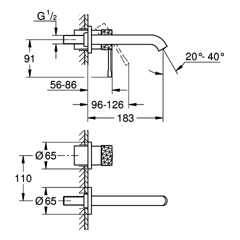 GROHE Fertigmontageset Essence UP-2-Loch-Waschtischmischer, Ausladung 18,3cm, chrom FG29192001