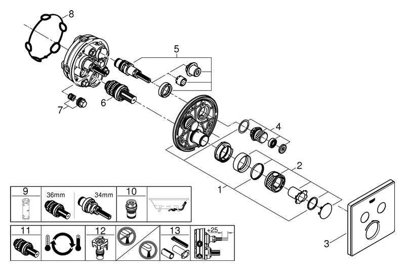 GROHE Fertigmontageset Grohtherm Smartcontrol UP-Thermostat, 2 Absperrventile, eckig, moon white