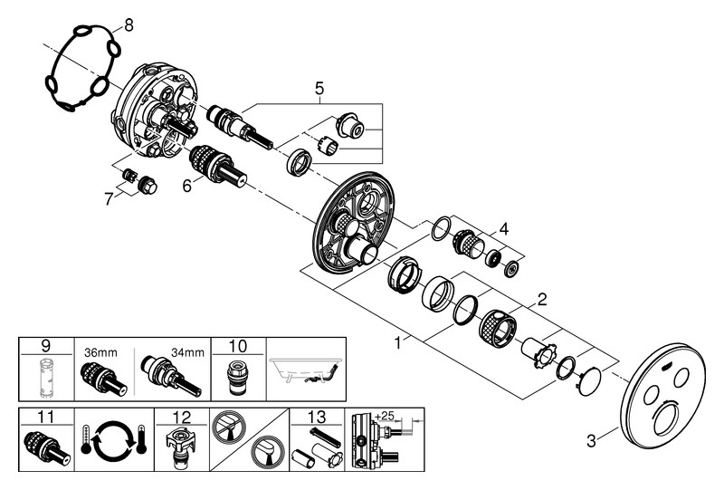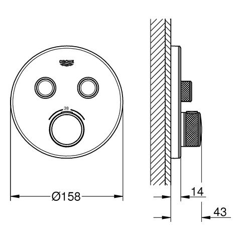 GROHE Fertigmontageset Grohtherm Smartcontrol UP-Thermostat, 2 Absperrventile, rund, moon white