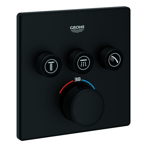 GROHE Fertigmontageset Grohtherm Smartcontrol UP-Thermostat, 3 Absperrventile, eckig, phantom black