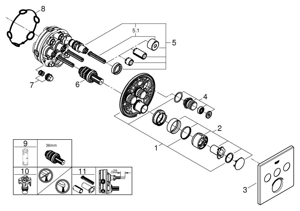 GROHE Fertigmontageset SmartControl UP-Einhebelmischer, mit 3 Absperrventilen, chrom