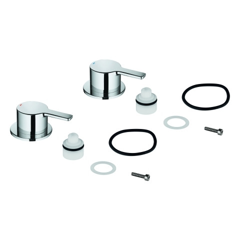 GROHE Griffpaar 48357, Metall, Markierung blau/rot, für Lineare 3-Loch-Waschtischbatterie, chrom