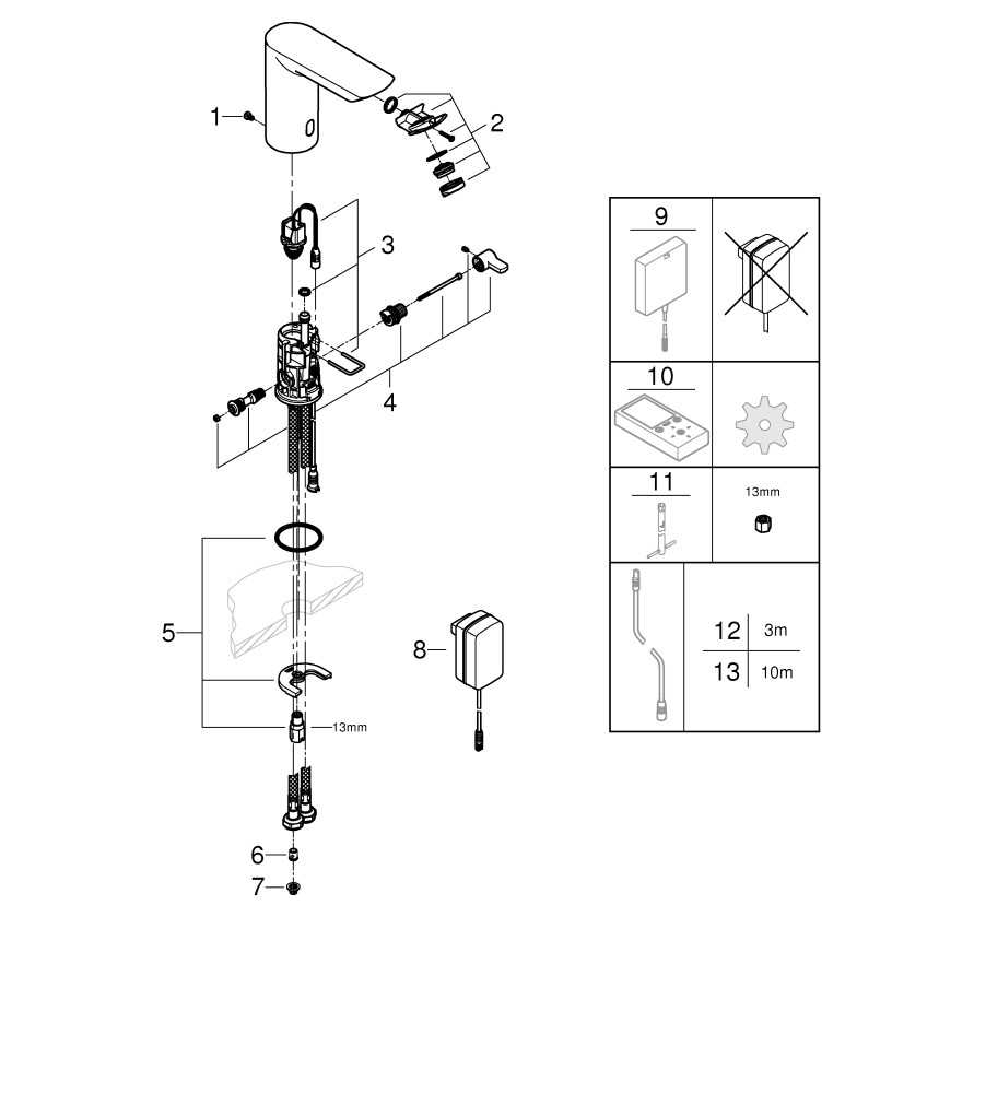 GROHE Infrarot-Waschtisch-Armatur Bau Cosmopolitan E 1/2", mit Mischung, Temperaturbegrenzer, Netzbetrieb, chrom