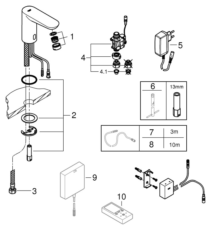 mit Infrarot-Sensor und Bluetooth-Modul für bidirektionale Kommunikation, zahlreichen Auslese-, Einstellungs- und Servicefunktionen, mit Steckertrafo 100-240 V AC, 50-60 Hz, 6,75 V DC, Long-Life Oberfläche, Water Saving weniger Wasser, max. Durchfluss bei 3 bar 5 l/min, Magnetventil extern, Schmutzfangsieb, Reichweite bis zu 10 m abhängig von Wand- und Bodenbelägen, Auslesefunktionen, App erkennt automatisch alle Produkte im Empfangsbereich, Anzahl automatischer Spülungen/Zeitpunkt letzte Spülung, Verbrauch pro Tag/der letzten 30 Tage, Anzahl thermischer Desinfektionen/Zeitpunkt letzte Desinfektion, Einstellungen Reichweite und Nachlaufzeit, automatische Spülung, thermische Desinfektion, Reinigungsmodus An/Aus Zeitsteuerung, Service Speichern und Senden von Profilen, Zurücksetzen auf Werks- oder Benutzereinstellungen, Armaturengruppe I nach DIN 4109, Schutzart Armatur IP 59K