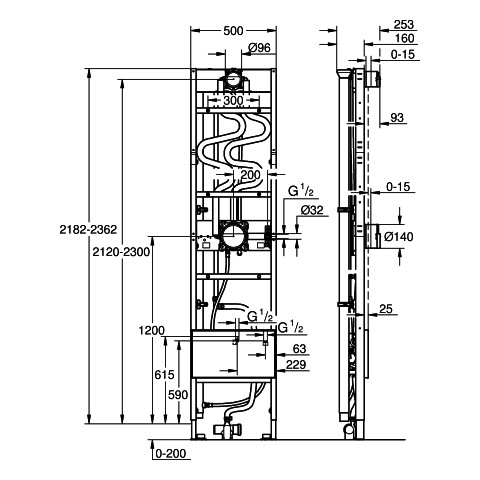 GROHE Rapido Duschrahmen Duo Heat Recovery 105786, Element für DUO Brausen Unterputz-Installationen, für Brauseninstallationen mit einer Handbrause und einer Duo Kopfbrause, mit System zur Wärmerückgewinnung aus Abwasser, ein Wärmetauscher