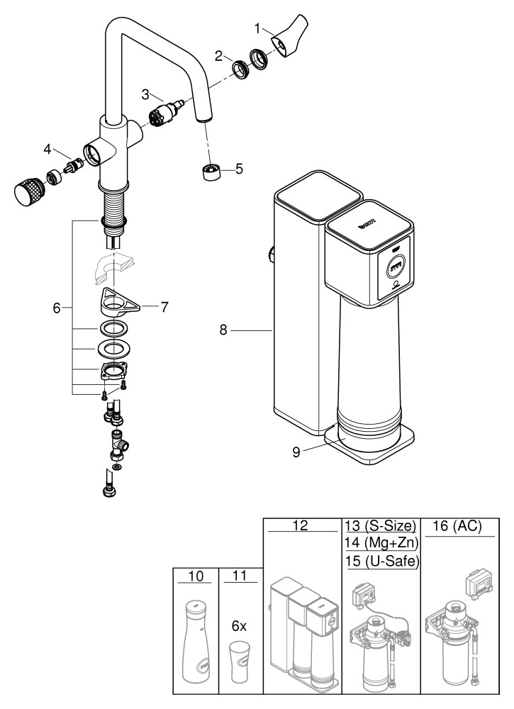 GROHE Spültisch-Einhebelmischer Blue Pure Eurosmart U-Auslauf, Starter Kit mit Umkehrosmose Filter, chrom
