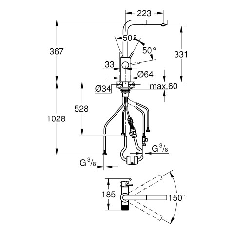 | Anschlussmaß Zufuhr | 3/8 Zoll |