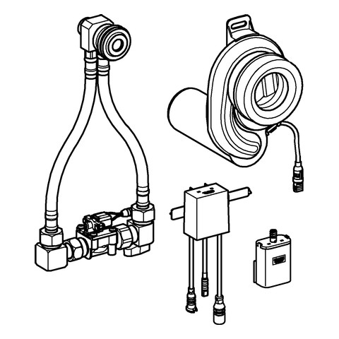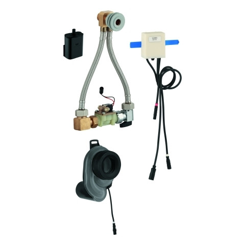6 V Lithium-Batterie, Typ CR-P2, mit Wasseranschluss-Set und Vorabsperrung, Siphon mit Temperatursensor, Kartusche mit Magnetventil und Schmutzfangsieb, Fließdruck min. 0,5 bar, Betriebsdruck max. 10 bar, 7 voreingestellte Programme, automatische Spülung, Reinigungsmodus, Vorspülung, nur für bestimmte Urinale geeignet
