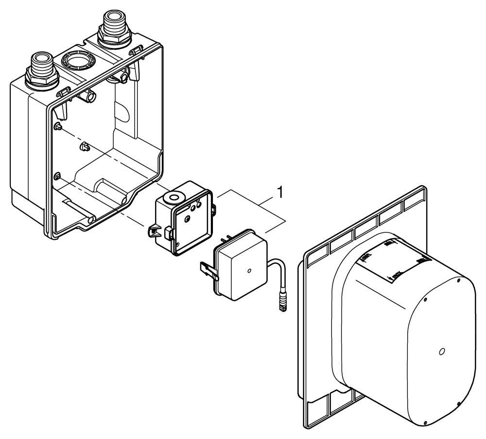 passend zu IR-Fertigmontagesets, 2 Vorabsperrungen, Gehäuse mit Mischeinrichtung, Rückflussverhinderer, Anschlussgehäuse für Netzspannung, passend für 36 315 000, 36 412 000, 36 376 000, für normgerechte Abdichtung zur Wandkonstruktion, mit Dichtmanschette