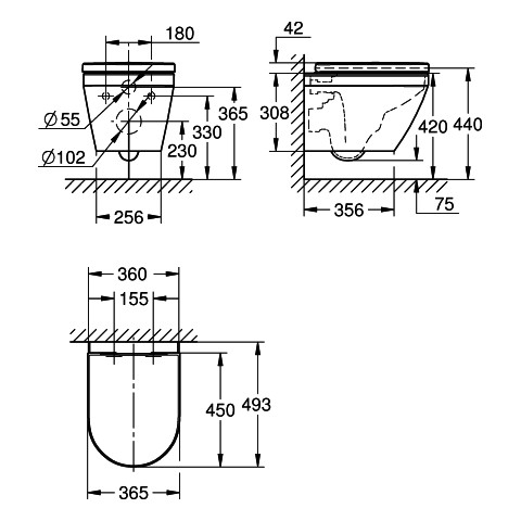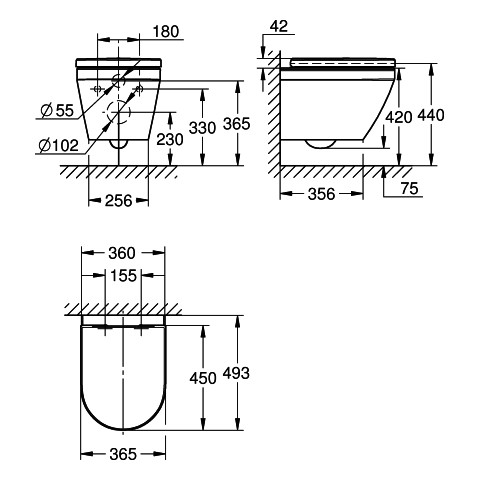 | Mittenabstand WC-Sitz-Befestigung | 155 mm |