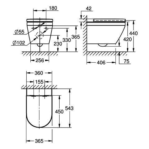 | Mittenabstand WC-Sitz-Befestigung | 155 mm |