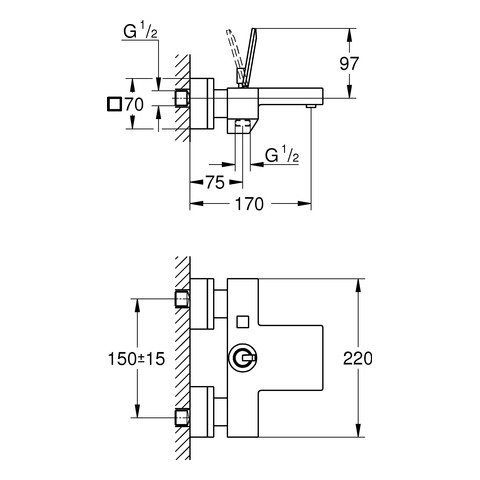GROHE Wannen-Einhebelmischer Eurocube Joy 1/2", XL Wasserfall, Wandmontage, chrom
