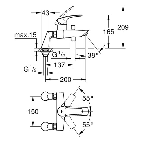GROHE Wannen-Einhebelmischer Eurosmart 1/2", Standmontage, chrom