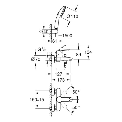 | Mittenabstand | 150 mm |
