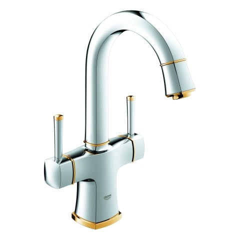 GROHE Waschtisch-2-Griff-Armatur Grandera 1/2", L-Size, mit Ablaufgarnitur, chrom/gold
