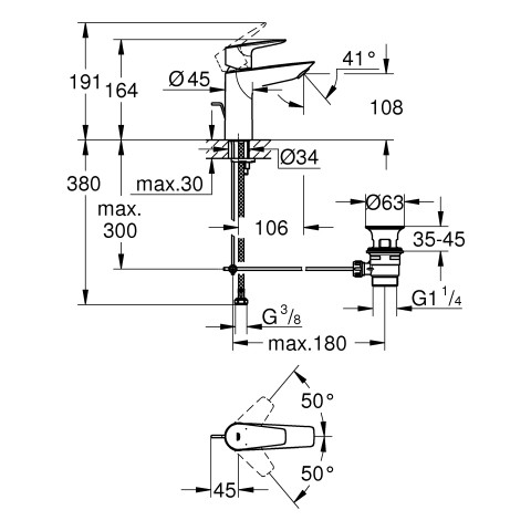 GROHE Waschtisch-Einhebelmischer BauEdge 1/2", M-Size, mit Ablaufgarnitur, Temperaturbegrenzer, chrom