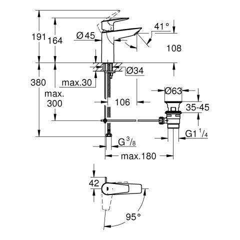 | Aufbauhöhe Unterkante Hahnauslass | 108 mm |