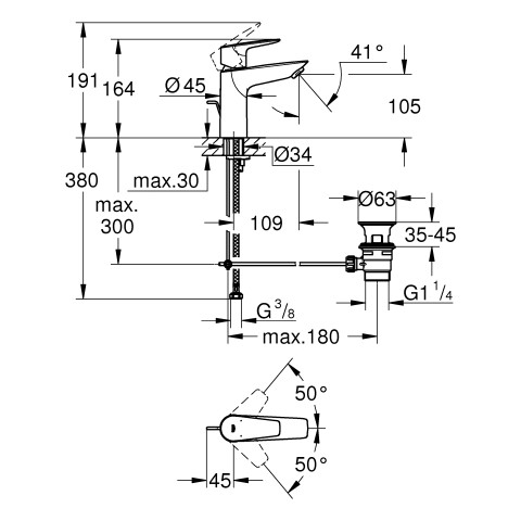 GROHE Waschtisch-Einhebelmischer BauEdge 1/2", M-Size, mit Ablaufgarnitur, Temperaturbegrenzer, chrom