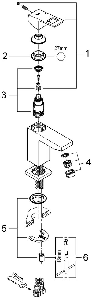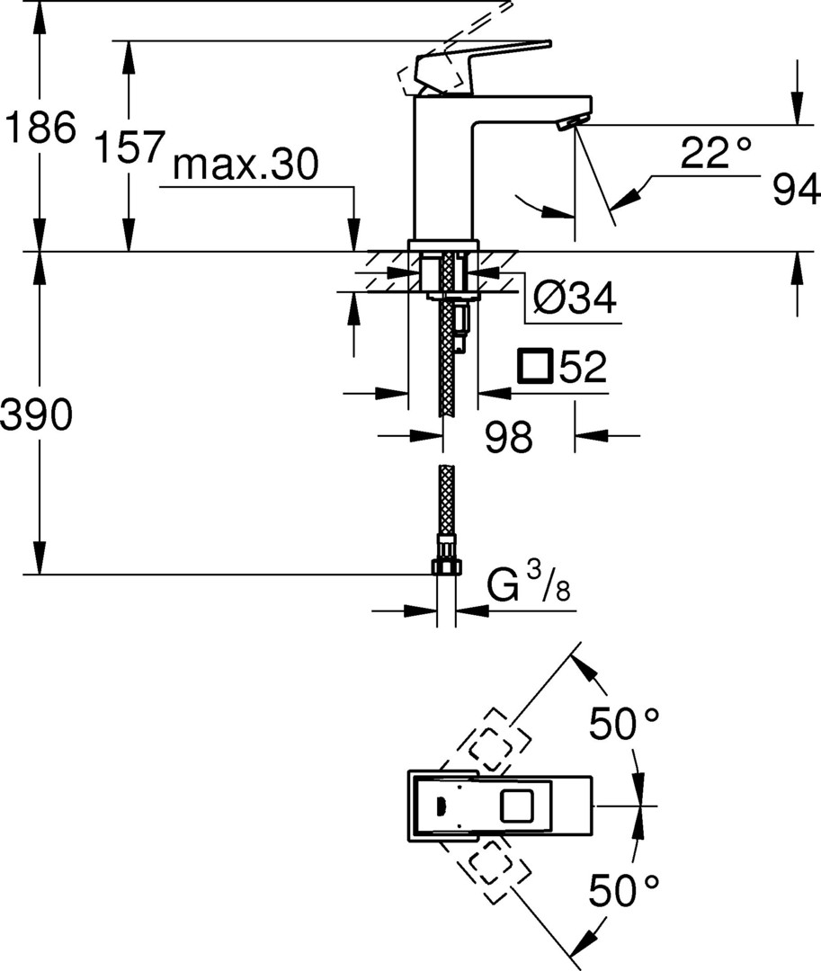 GROHE Waschtisch-Einhebelmischer Eurocube chrom, S-Size, glatter Körper, ohne Durchflussbegrenzer