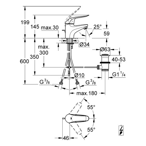 GROHE Waschtisch-Einhebelmischer Euroeco Special 1/2", ND, mit Zugstangen-Ablaufgarnitur 1 1/4", chrom