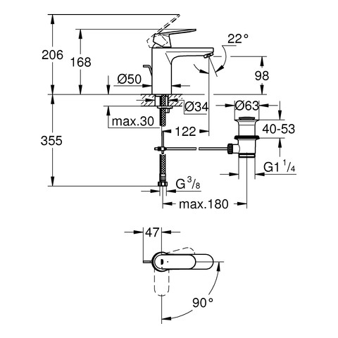 | Aufbauhöhe Unterkante Hahnauslass | 98 mm |
