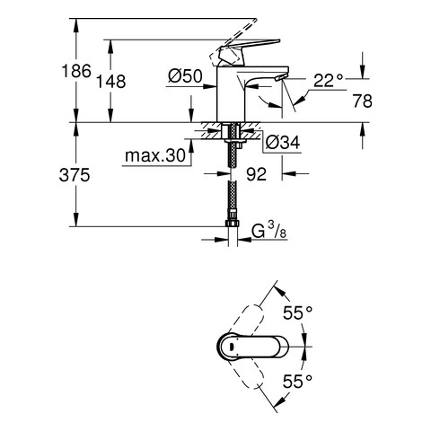 GROHE Waschtisch-Einhebelmischer Eurosmart Cosmopolitan 1/2", S-Size, glatter Körper, Bedienungshebel aus Metall, chrom