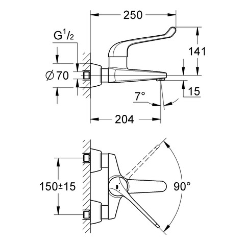 GROHE Waschtisch-Sicherheits-Einhebelmischer Euroeco Special 1/2", Ausladung 20,4cm, Wandmontage, chrom