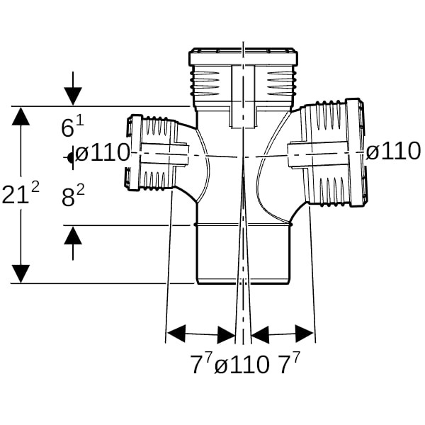 Geberit Abzweig Silent PP DN 110/110/110, mit Innenradius, 87,5Grad, 2-fach