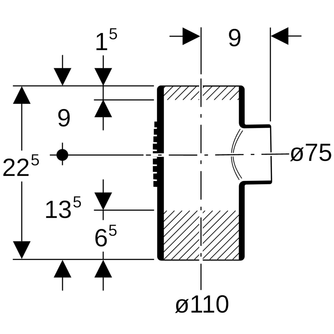 | Rohraußendurchmesser Anschluss 1 | 110 mm |