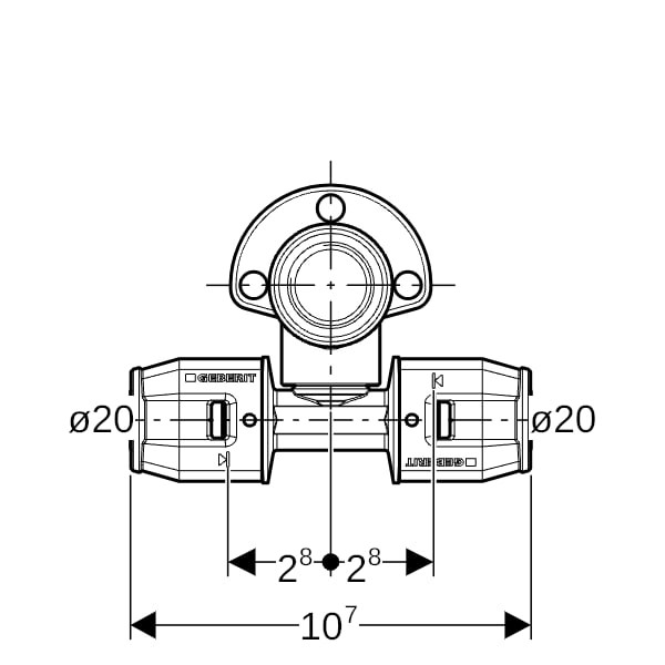 Geberit Anschluss-T-Stück PushFit 20 mm x Rp 1/2, 90Grad, 37mm, Messing