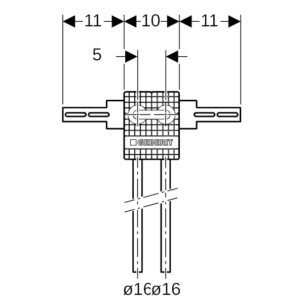 Geberit Anschlussbox PushFit Typ L Ø 16 mm, mit Befestigungsblech, für Druckprüfung ohne Heizkörper