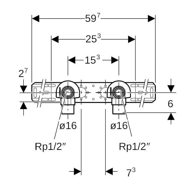 Geberit Anschlusswinkel FlowFit Ø 16 mm x Rp 1/2, AD 15,3 cm, 90Grad, 2-fach, vormontiert GE619640001