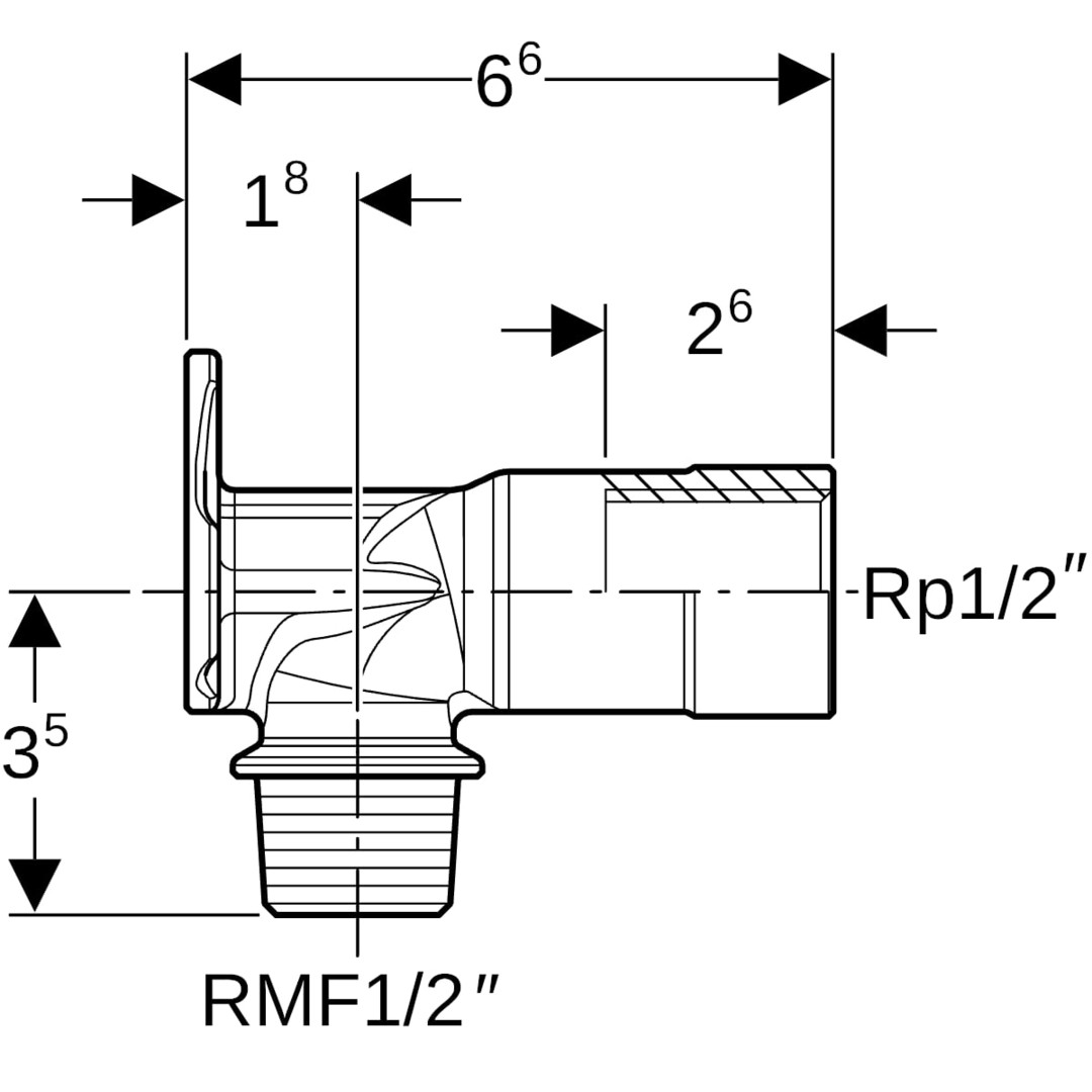 Geberit Anschlusswinkel Rp 1/2 x R MF 1/2 x 6,6 cm, 90Grad, Rotguss