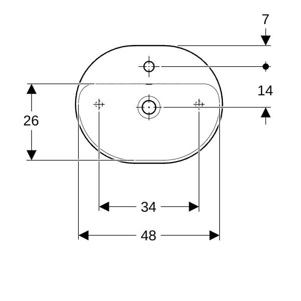 Geberit Aufsatz-Waschtisch VariForm 50x40cm, mit Hahnlochbank, mit Überlauf, elliptisch, weiß GE500775012