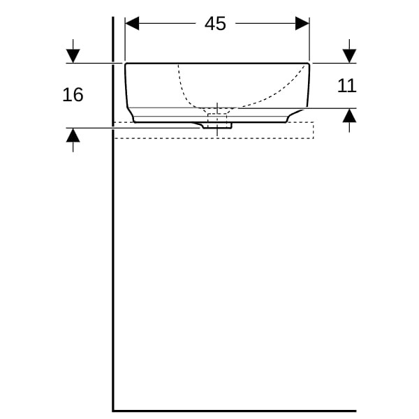 Geberit Aufsatz-Waschtisch VariForm weiß, 60x45cm, mit Hahnlochbank, mit Überlauf, oval