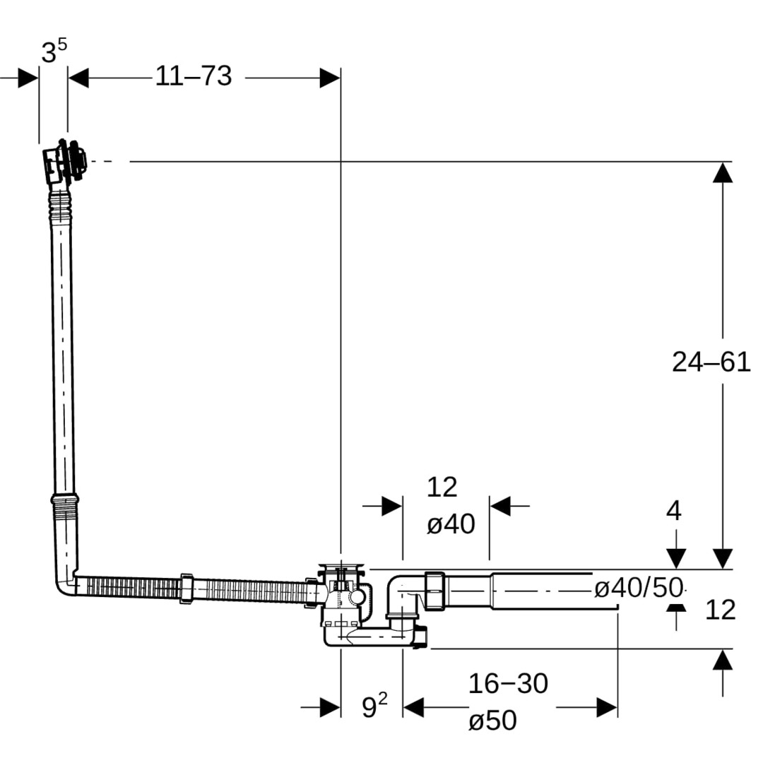 Geberit Badewannenablauf d52 mit Drehbetätigung, Länge 73cm, DN 40/50