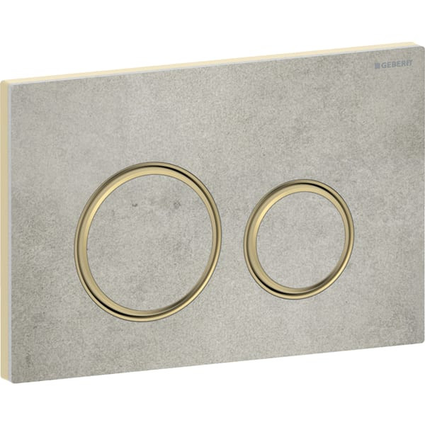 Geberit Betätigungsplatte Sigma21 Round Platte/Taste verchromt, Betonoptik, Ring Messing, für 2-Mengen-Spülung GE115652JV1