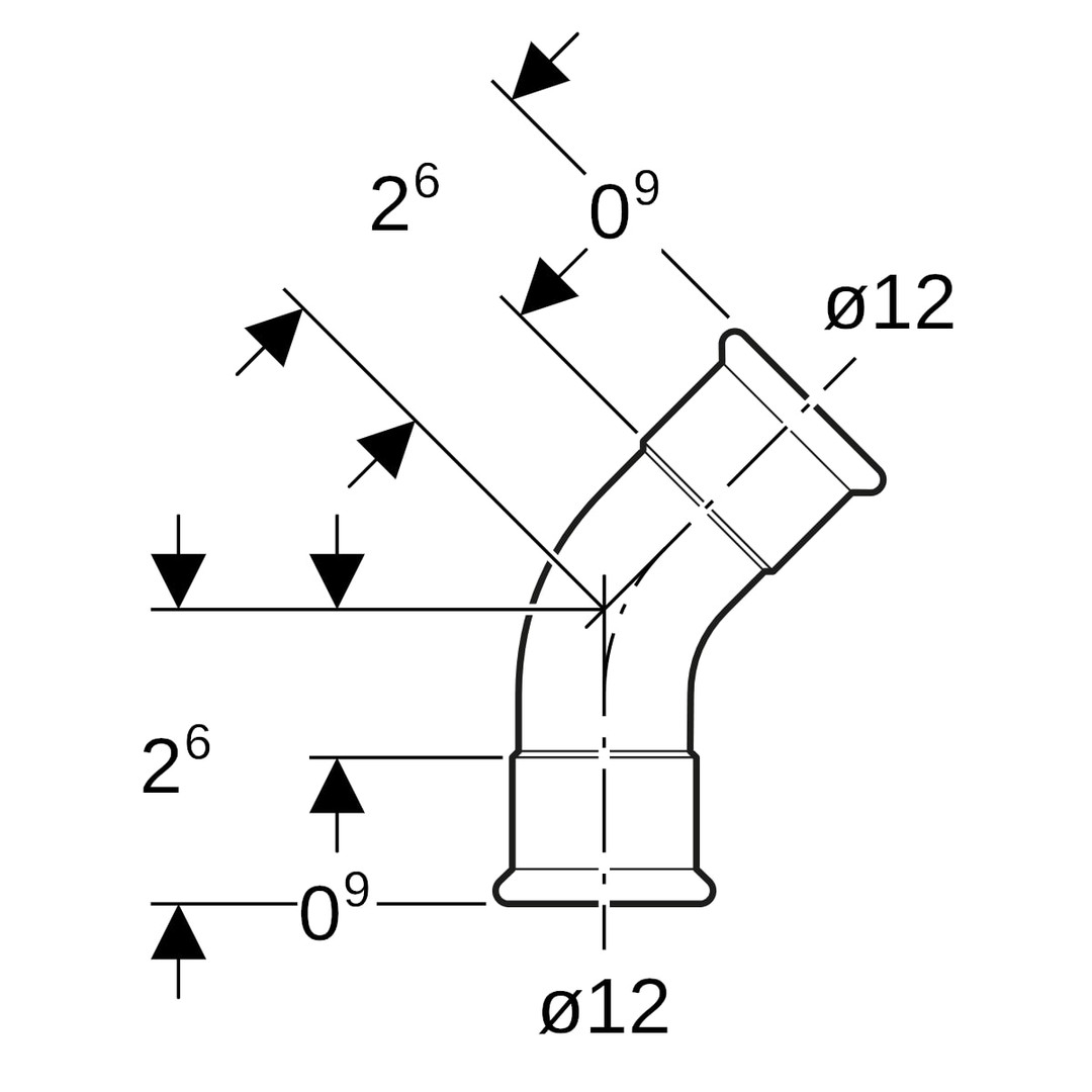 Geberit Bogen Mapress 45°, Kupfer, Ø 12 mm