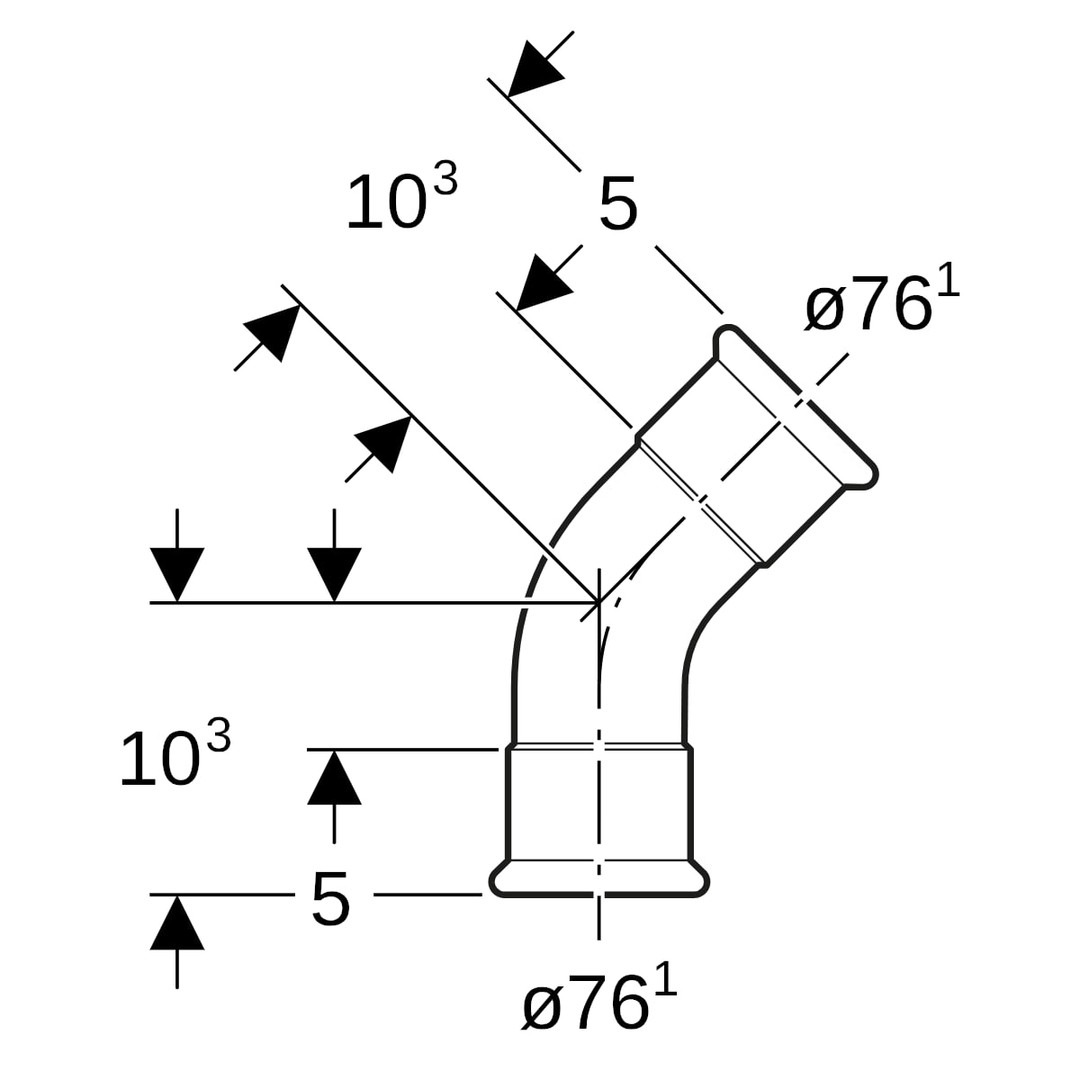 Geberit Bogen Mapress 45°, Kupfer, Ø 76,1 mm