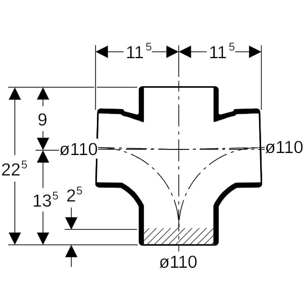 | Rohraußendurchmesser Anschluss 1 | 110 mm |
