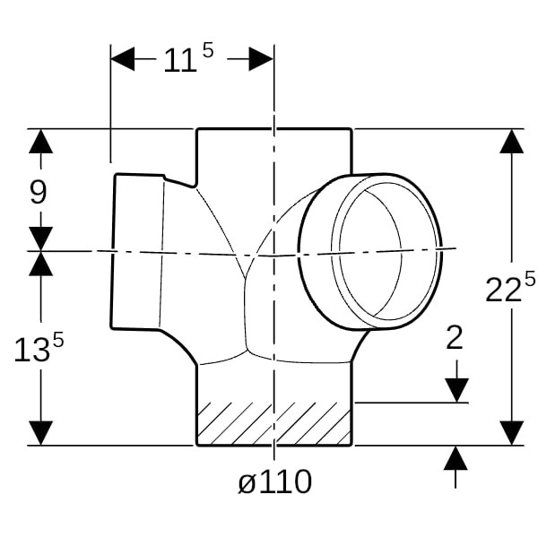 | Rohraußendurchmesser Anschluss 2 | 110 mm |