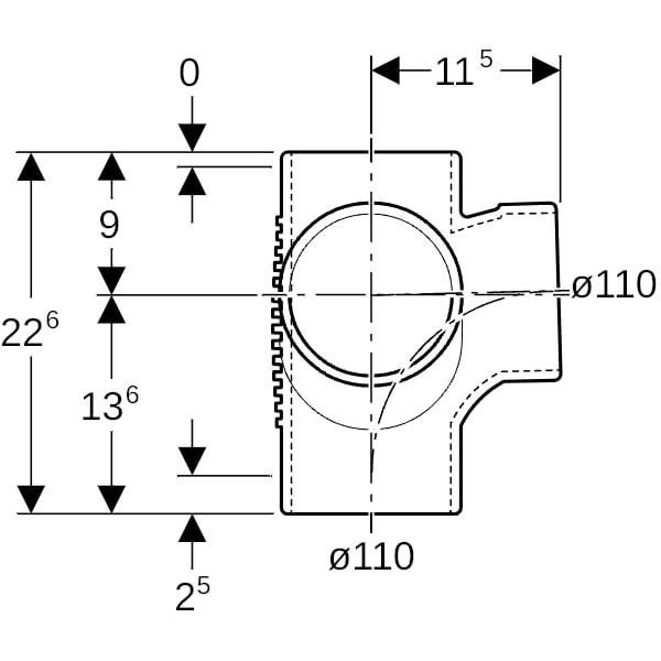 | Rohraußendurchmesser Anschluss 1 | 110 mm |
