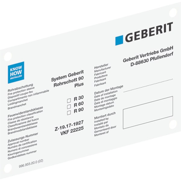 Geberit Hinweisschild für Schachtschott Typ Quattro
