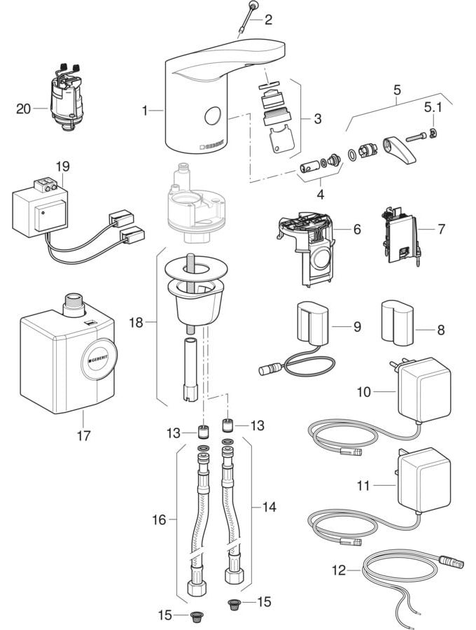 Geberit Infrarot-Waschtisch-Armatur Typ 185 Batteriebetrieb, hochglanz-verchromt, mit Mischer und Griff GE116255211